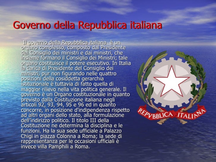 Consiglio Dei Ministri Della Repubblica Italiana : Il Consiglio Dei Ministri, In Una Forma Di Governo Parlamentare Quale L'italiana, È Il Principale Detentore Del Potere Esecutivo, Cioè Il Potere Di Rendere Concreto Un Determinato Indirizzo Politico.